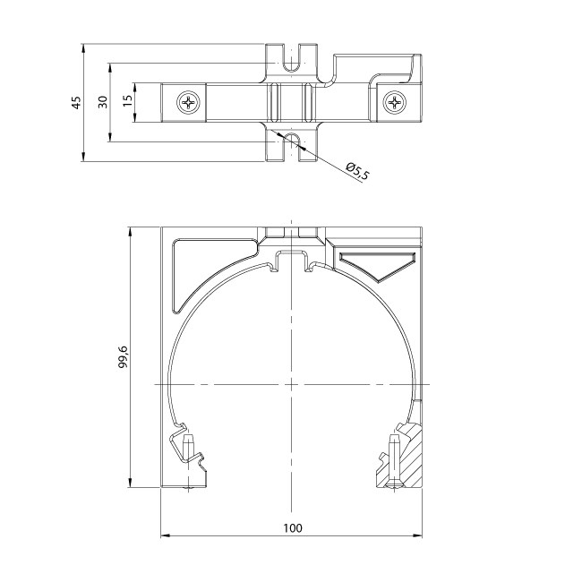 • Körper aus PA6.• Blockierung mit selbstschneidenden Schrauben.• Geeignet für Kästen mit einer Größe von 100x100 mm oder größer. (Nische 120 mm)• Passend zu vertikaler Anwendung und versetzt• Optionales Zubehör für die versetzte Version (7165D) verfügbar.